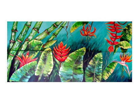 Ama las paletas de colores fuertes que ayudan a expresar la pasion de las mujeres con sus largos vestidos y sensualidad , la delicadeza de los niños que juegan con su entorno y la naturaleza que posa serena como una foto que tiñe de oleos sus lienzos.